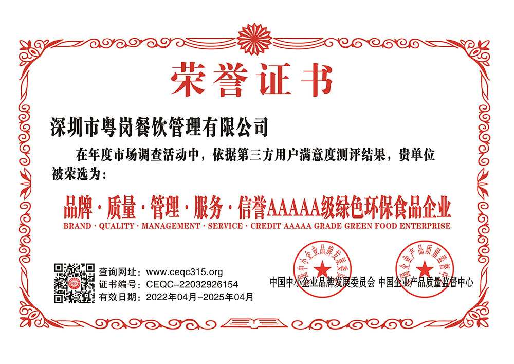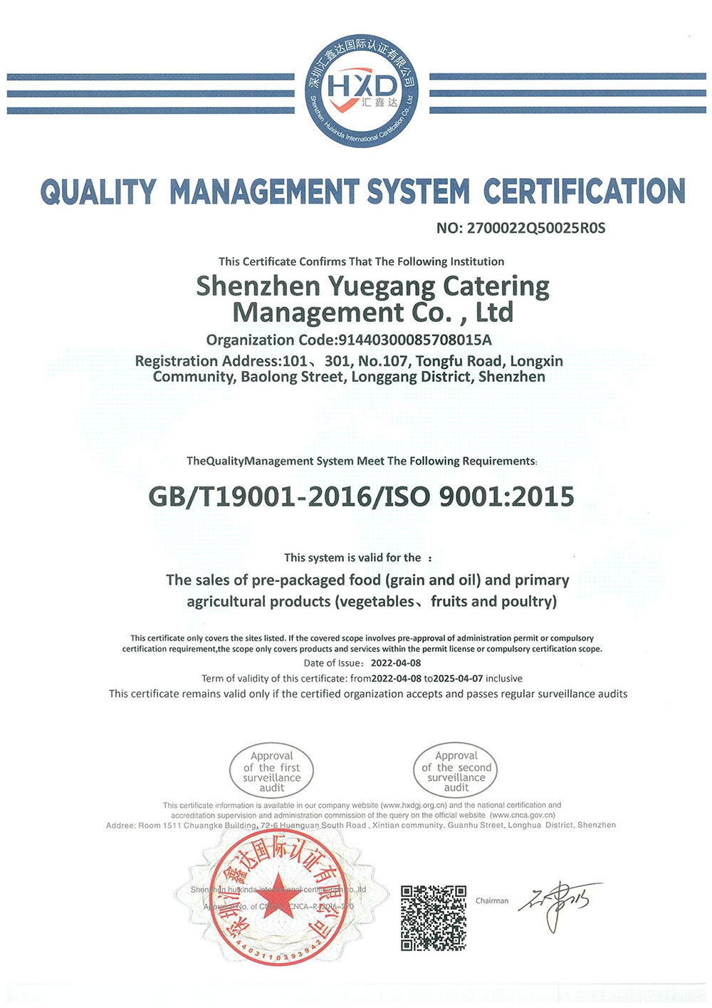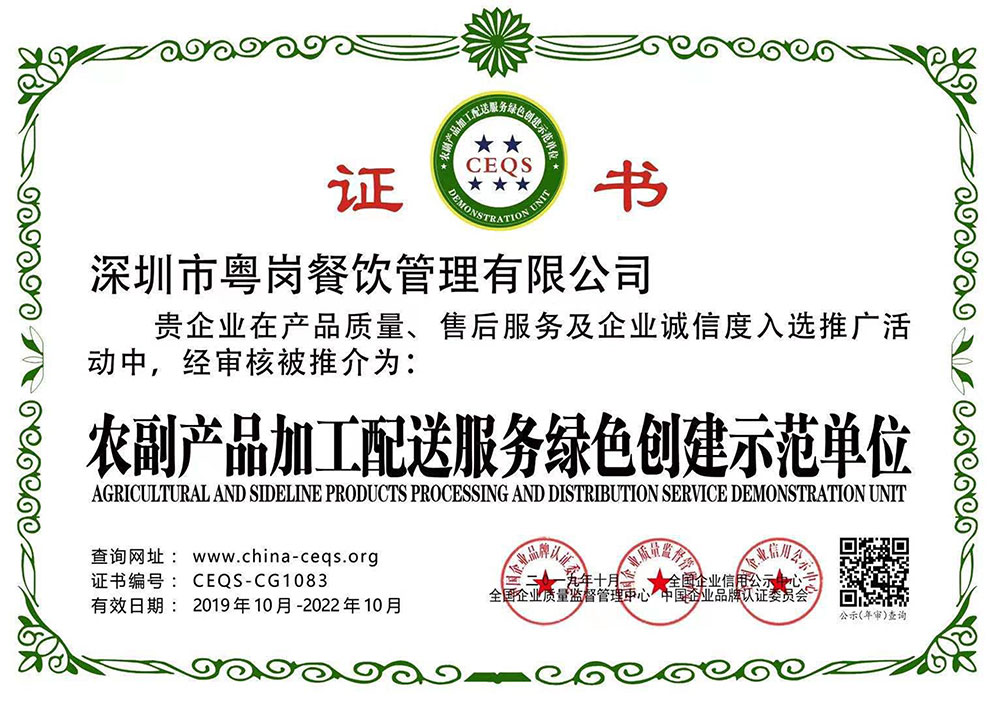 深圳市粵崗餐飲管理有限公司,是一家集蔬菜種植和農(nóng)副產(chǎn)品配送為一體的專業(yè)型餐飲公司,主要為學(xué)校、工廠企事業(yè)機(jī)關(guān)單位提供蔬菜和農(nóng)副產(chǎn)品配送服務(wù)。公司自成立以來(lái)始終以質(zhì)優(yōu)價(jià)廉、服務(wù)至上為原則,嚴(yán)格按照ISO:9001國(guó)際標(biāo)準(zhǔn)體系進(jìn)行管理。同時(shí)建立了行業(yè)領(lǐng)先的配送中心、大型冷庫(kù)和保鮮庫(kù)、檢測(cè)中心以及專業(yè)化的配送團(tuán)隊(duì),能長(zhǎng)期安全、穩(wěn)定、準(zhǔn)時(shí)的配送貨物。我們所有蔬菜均經(jīng)過(guò)初步加工、無(wú)黃葉,無(wú)泥沙等雜質(zhì),利用率達(dá)97%以上...保障向用戶提供的各類食材的衛(wèi)生和質(zhì)量。公司為了適應(yīng)不同客戶的需求,配有專業(yè)人員和配送車(chē)輛,實(shí)行“一對(duì)一”的服務(wù)體制,一心一意的為客戶服務(wù),秉承粵崗誠(chéng)實(shí)守信、服務(wù)第一、客戶至上的服務(wù)標(biāo)準(zhǔn),真正讓客戶花最少的錢(qián)吃最好的菜。粵崗多年來(lái)何以欣欣向榮,因?yàn)槲覀冎乐挥杏掠趽?dān)當(dāng)責(zé)任,才能承擔(dān)更大的責(zé)任,就是因?yàn)?粵崗員工貫徹公司態(tài)度決定一切、細(xì)節(jié)決定成敗的真理,從質(zhì)量抓起,從服務(wù)做起,才創(chuàng)造了如今的規(guī)模化供應(yīng)、統(tǒng)一性配送、專業(yè)化服務(wù)的粵崗。